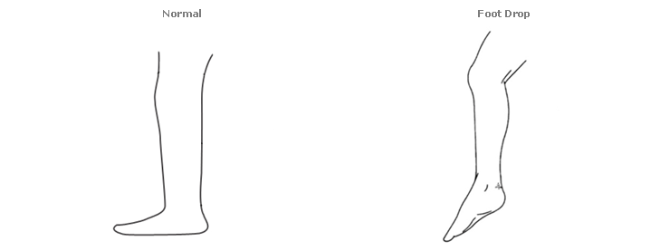 Foot drop can be caused by nerve damage alone. However, it is also caused by muscle or spinal nerve trauma, abnormal anatomy, toxins or disease. Diseases that can cause foot drop include stroke, Amyotrophic lateral sclerosis (ALS or Lou Gehrig's Disease), muscular dystrophy, Charcot Marie Tooth disease, and multiple sclerosis. As a result, walking is made: